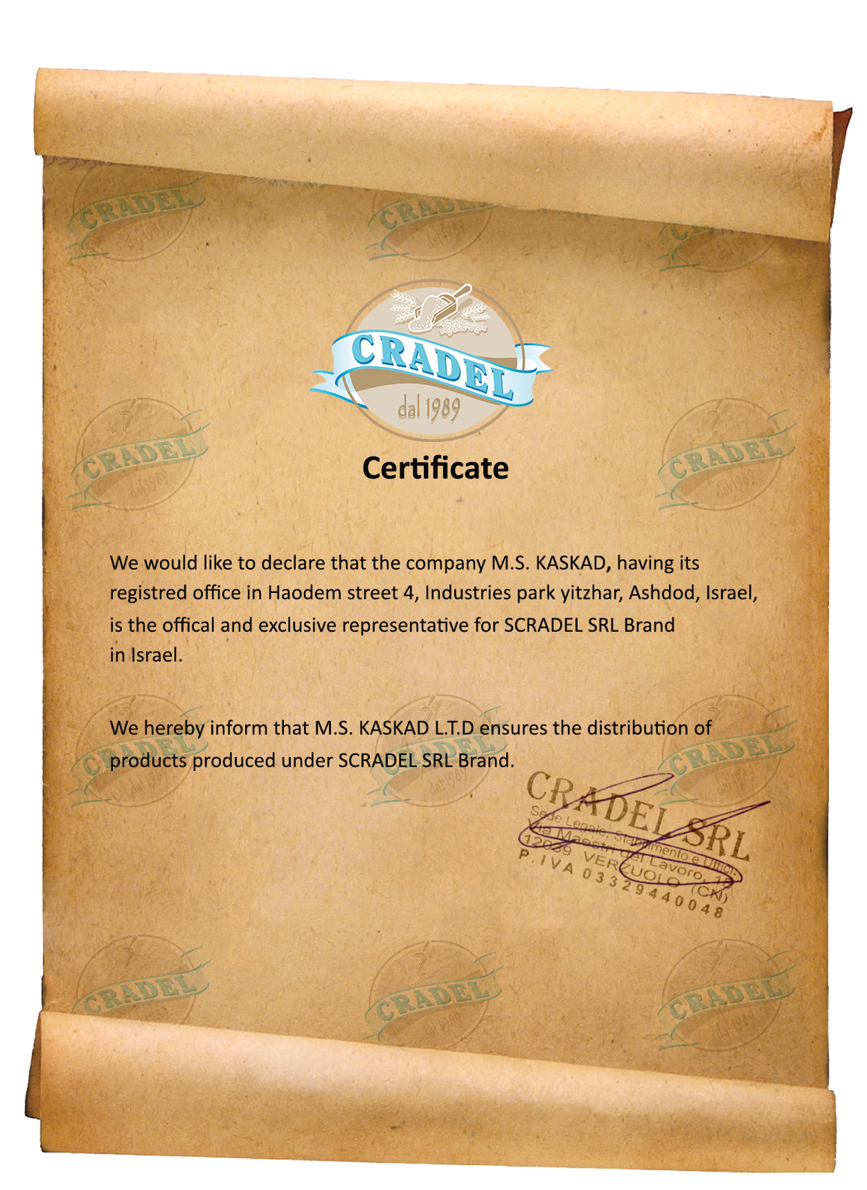 Cradel was started up in 1989 by the will of owners stiano e Luca. We started this cooperation when we were very young (17 y.o. Cristiano and 24 y.o. Cianluca), we were so enthusiastic about this and we really wanted to capitalize on our knowledges of the trade of a baker and pastry we had learned at home. We established our company relying on experiences into the field of homemade patisserie and bakery completed by previous We’ve always seen our parents kneading and baking: that’s how basis production. We started in the little workshop dow alia (corn pastries) e bugie (sweet e street and since then we’ve come a long way. Cookies, tarts, crumble tarts, rusks, biscuits for carnival): the range of products decome more and more various.